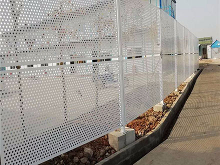 冲孔围挡板子厚度:0.7mm-2mm之间都可以加工,常用长宽1米*2米;1.2米*2米。